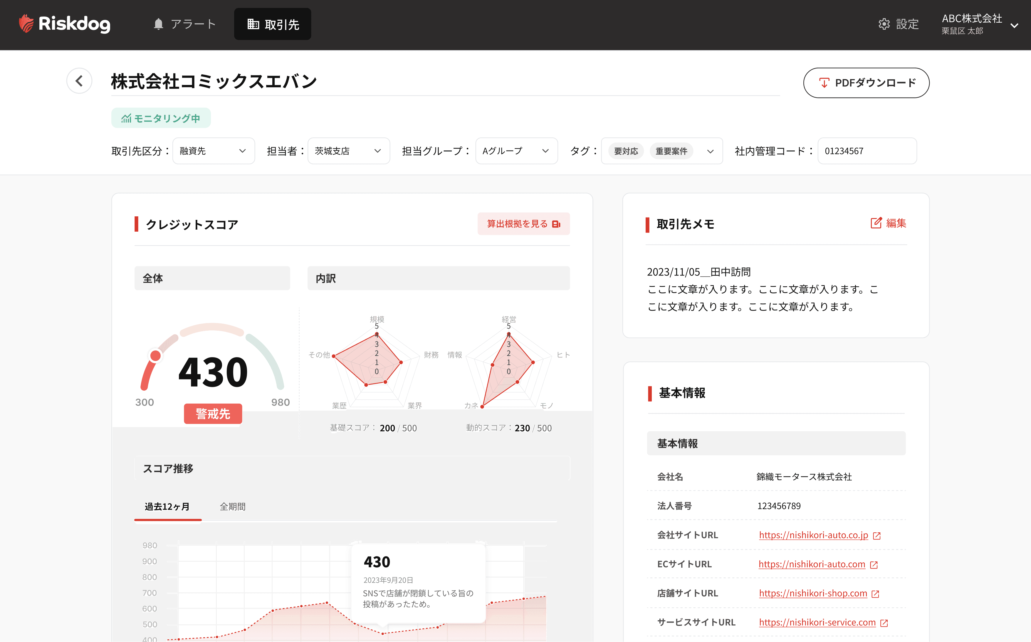 中小企業を含む取引先リスクをリアルタイムで数値化。